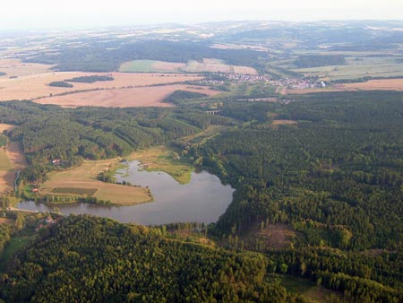 vlevo: Pohled z balónu na oblast kde se nachází Statek Beranka